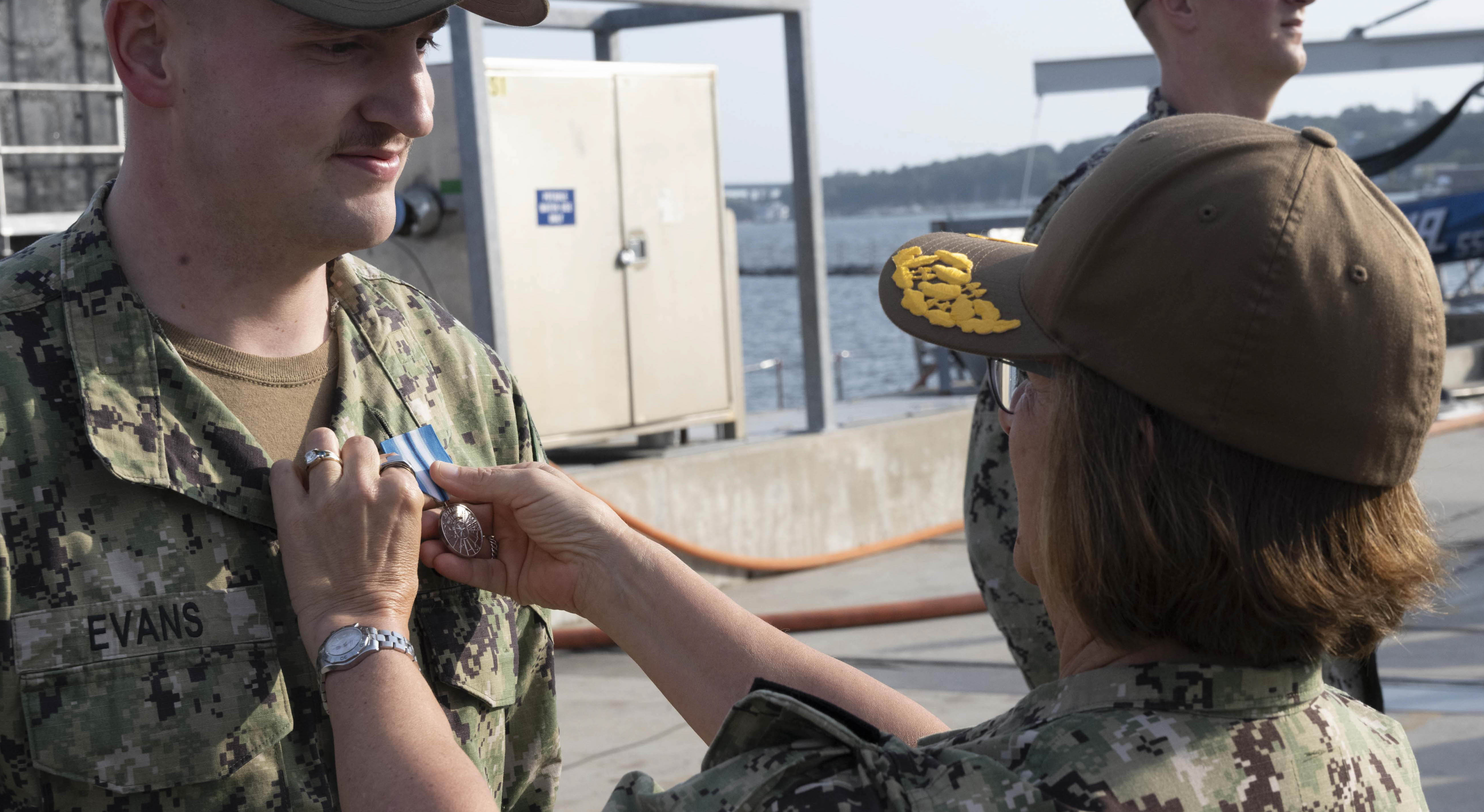 Chief of Naval Operations Adm. Lisa Franchetti, who was at Camp Whale to meet the Indiana in March, presented the new medals Sept. 17 to the crew and others at Naval Submarine Base New London, Connecticut.