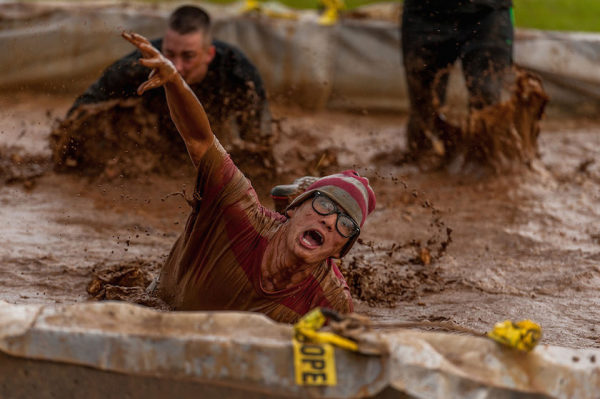 Airman 1st Class Austin Jeanneret crawls through a mud puddle during a ‘Tuff Mudder’ challenge at Lajes Field, the Azores, Portugal, Sept. 17, 2012.