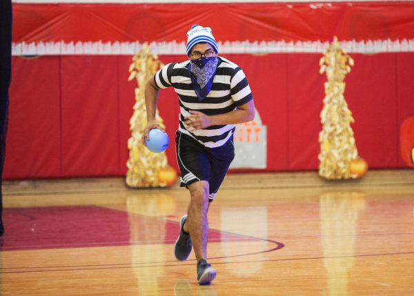 Cpl. Felipe Martinez, a reconfigurable transportable consolidated automated support system technician with Marine Aviation Logistics Squadron 13, prepares to throw a ball at the opposing team during the “Dodge of The Dead” dodgeball tournament at the gymnasium aboard Marine Corps Air Station Yuma, Ariz., Tuesday, Oct. 20, 2015.