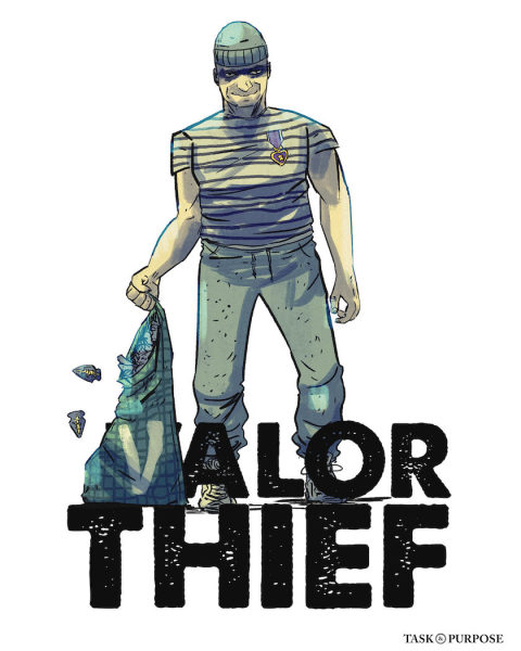 There’s no villain more fearsome than the Valor Thief. If you’re not careful, he’ll steal all of those medals you earned in the military. Then, when you’re not looking, he’ll use those medals to live a totally awesome and fulfilling life — and he didn’t even have to go to Iraq!