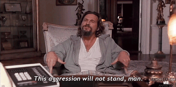 “I do mind, the Dude minds. This will not stand, ya know, this aggression will not stand, man.”