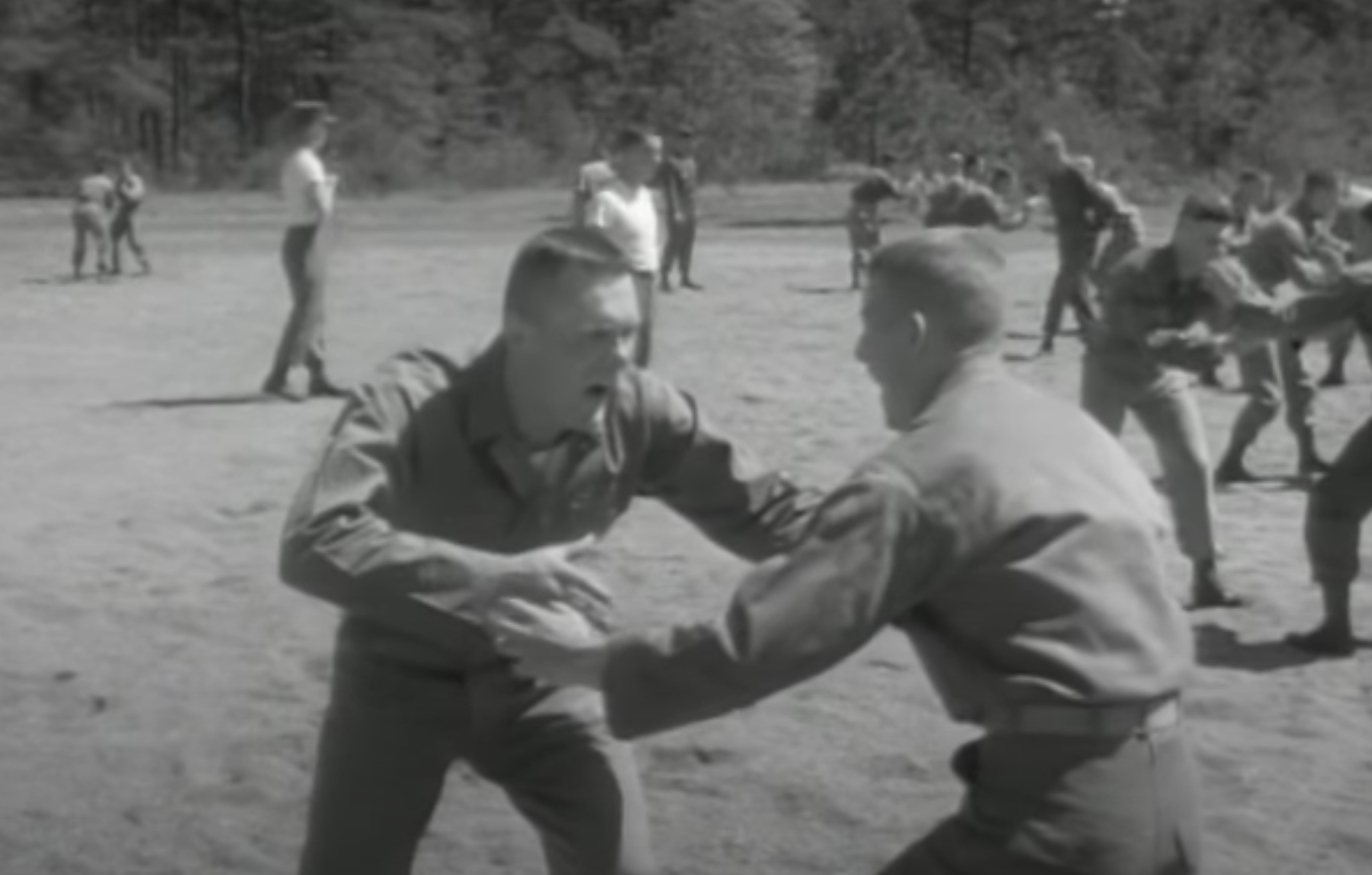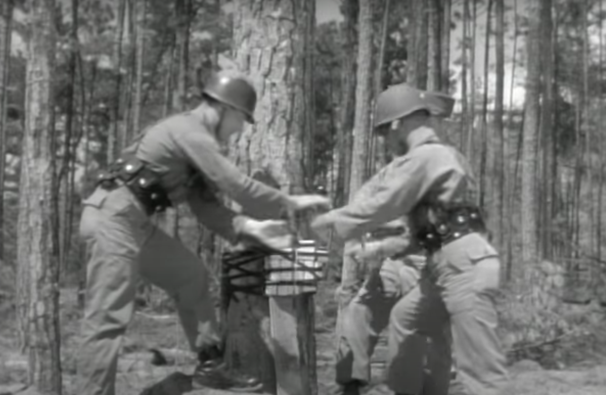 But there’s also plenty of footage that will look familiar to any Ranger School graduate. Even in 1953, there was the log walk, dropping 30 feet into a freezing pond screaming “Ranger!”, and plenty of patrolling through swamps.