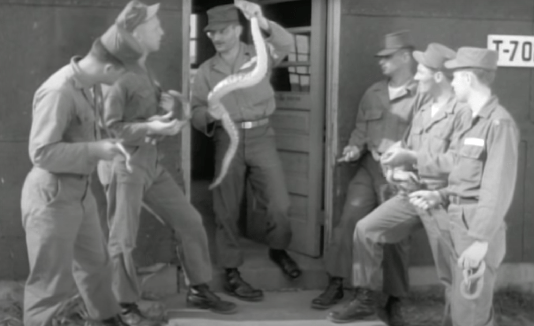 The Ranger recruits attend a survival class, where they learn that palmetto leaves can be a nourishing, if not flavorful, source of nourishment. They also get an introduction to the local fauna. As these men learn, “rattlesnake meat is a gourmet’s delight.”