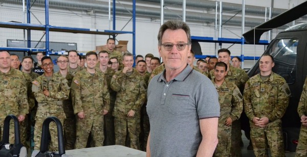 Actor and director Bryan Cranston, known for his award-winning turn on AMC’s intense crime drama Breaking Bad, made a surprise trip to Germany to visit soldiers stationed at U.S. Army Garrison Ansbach on July 24, and he did so in style.