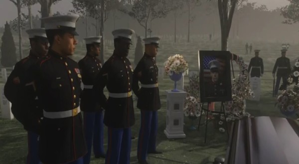 A scene from Call of Duty Advanced Warfare was the target of plenty of mockery from the gaming community when it was released. The scene in question involves the player attending the Arlington funeral of his fellow Marine and close friend who was killed in a previous operation.