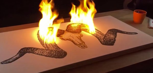 In a stroke of genius, he organized it into a tree shape, set it on fire, and boom: art happened.