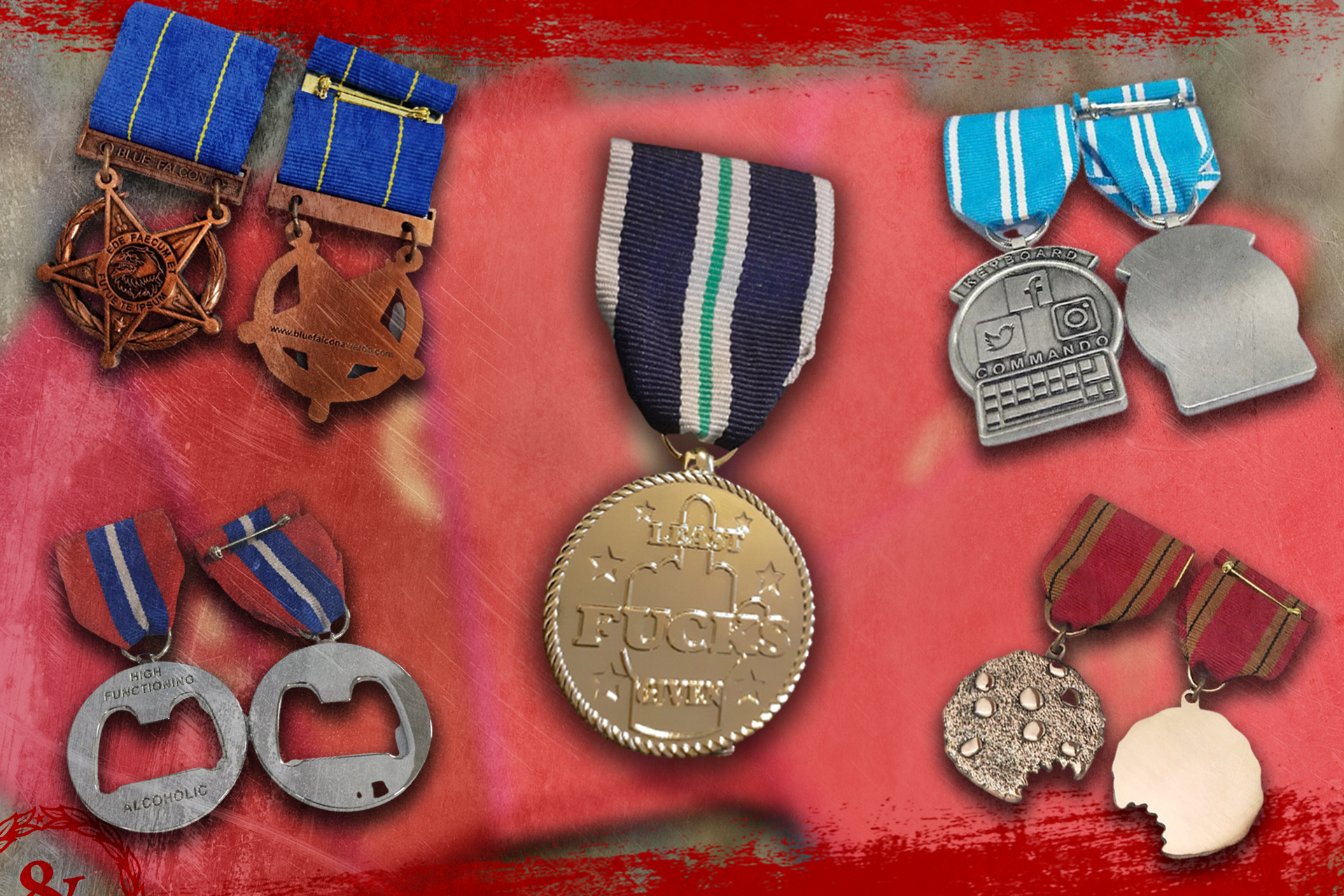 Started by Kevin Bradford, the Blue Falcon Awards shop includes rank insignia, uniform badges, decorations, and challenge coins which range in price from $10 to $30. Even the company’s name — a euphemism for “buddy fucker” — speaks to the junior enlisted angst that is the beating heart and soul of military culture.