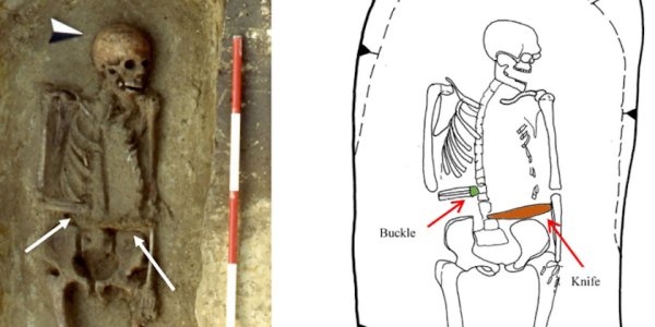 D-shaped buckle and the location of the knife. Unlike most burials, the right arm of the individual