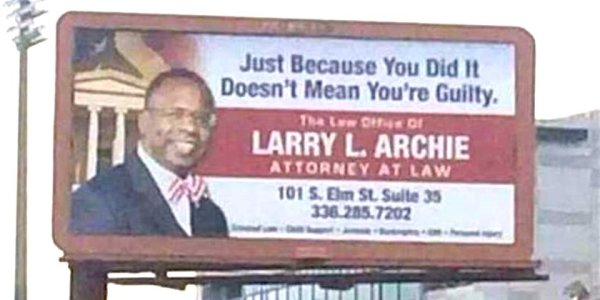 Sure, a local judicial race is small beans compared to some of the other veteran-heavy races this cycle, but Archie’s name should sound familiar: it’s because he’s the attorney behind this perennially-viral billboard proclaiming, ‘Just Because You Did It Doesn’t Mean Your Guilty.’