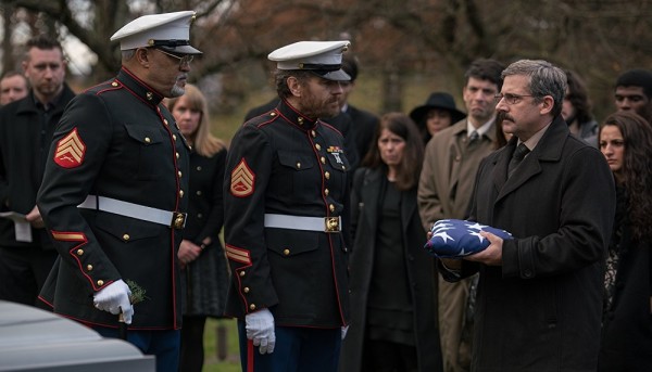 Steve Carell is a grieving father and Vietnam War veteran who reunites with his former squadmates, played by Bryan Cranston and Laurence Fishburne, to transport his son’s body back home from Dover in Last Flag Flying, an upcoming star-studded drama.
