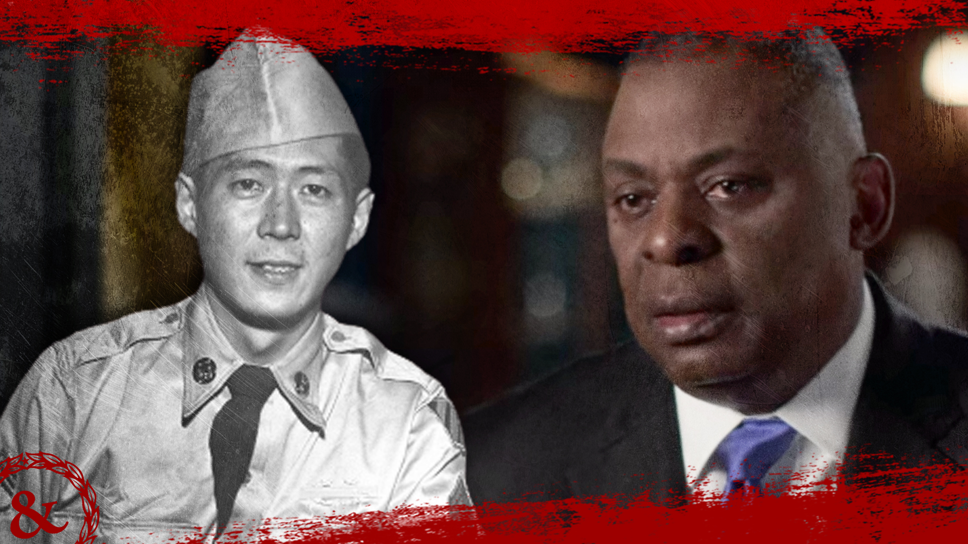 Feature image: A photo composite showing Medal of Honor recipient Hiroshi Miyamura, and Lloyd Austin, the current Defense Secretary, who spoke about Miyamura’s heroism for an episode of the 2018 Netflix show Medal of Honor. (Photo of Hiroshi Miyamura via National Archives / Screenshot of Lloyd Austin via Netflix)