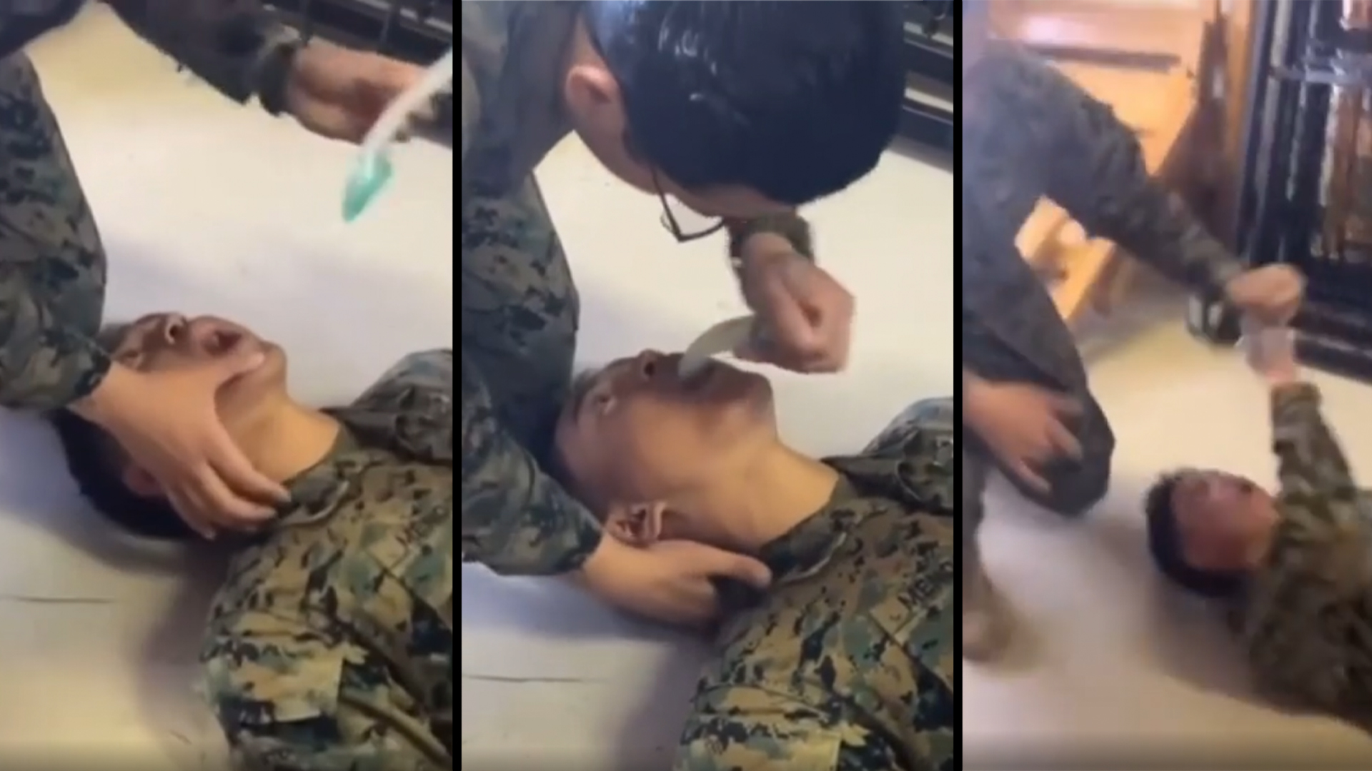 CORRECTION: 4/11/2024: An earlier version of this article inaccurately identified the two in the video as Marines. That is incorrect. They are actually Navy Corpsmen.