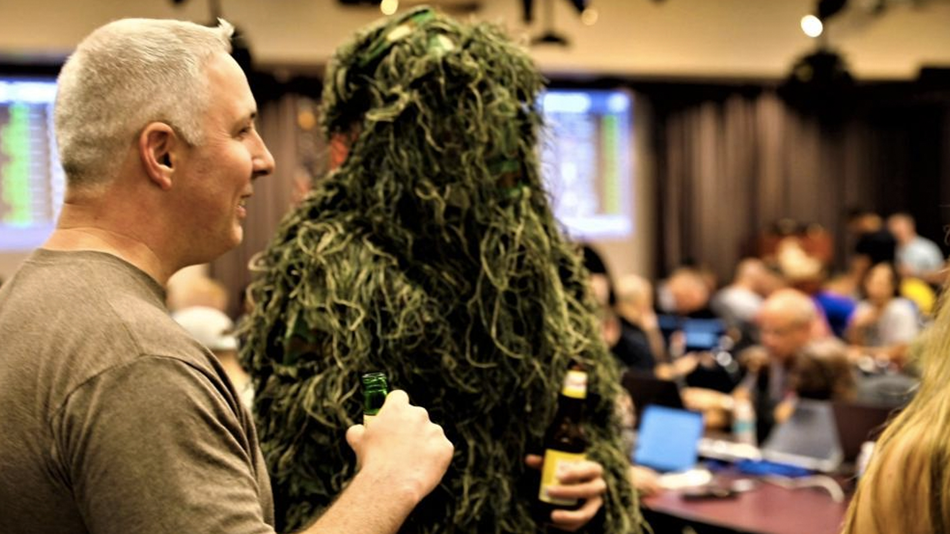 The names of the contestants and teams were just as colorful as the outfits, including Goblin_Sharks, off_Constantly, Happy_Hooligans, Slackers, and The_Unsecures. Alas, it was a non-Hawaiian shirt wearing team that took home the gold: the Sooners of the Oklahoma Army Guard Defensive Cyber Operations Element. It’s all right, ghillie suit guy, you may not have won the contest but you definitely won our hearts.