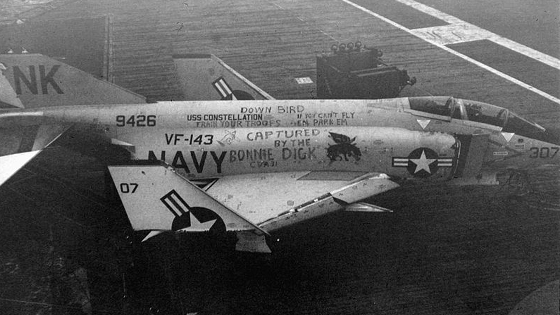 “If you can’t fly ‘em, park ‘em,” wrote one sailor on the side of an F-4 Phantom II assigned to the USS Constellation that had the misfortune of landing on the USS Bon Homme Richard sometime between 1962 and 1964. These mementos can be considered part of a larger military aviation tradition called “zapping,” where aviators do their best to make their mark on any unit they happen to visit.