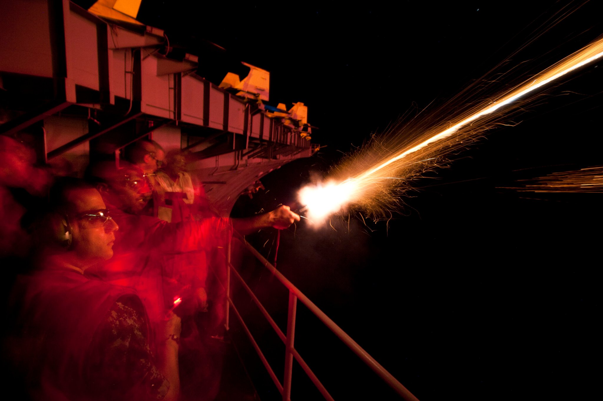 They had a traditional American grill out with hot dogs and burgers to go along with the beer, but the fun didn’t stop there. The ship carried out live fire exercises with the Mk15 Phalanx Close-In Weapons System (CIWS), and as dusk gave way to late night, fireworks were launched from the ship.