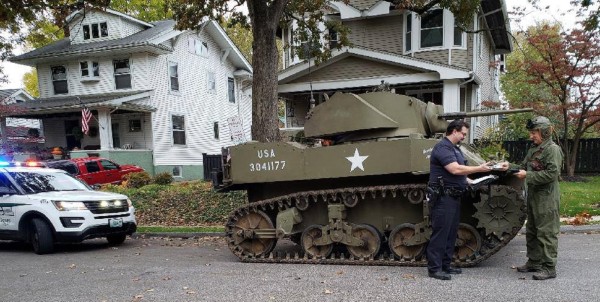 At first glance it appears that yesterday in the small town of Webster Groves, Mo., a local cop pulled over an M5 Stuart Light tank and gave the driver a ticket.