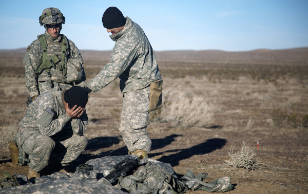 This title is both funny and a bit tooooooo accurate, especially since it shows a soldier from the 3rd Battalion, 21st Infantry Regiment consoling a fellow soldier after spending all night sleeping outside in the cold at the National Training Center at Ft. Irwin, California in January 2017. It will be OK buddy. Thanks for the pep talk, chief.