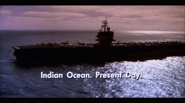 After this draft was picked up for the feature film, it was rewritten by legendary script doctor Warren Skarren, who not only added the timeless flipping of the bird in the initial MiG scene but shifted the encounter’s setting location of the Indian Ocean. This is a key change, one that eliminates North Korea and China from likely operating in this area due to geographic realities: In the 1980’s, China was not operating any aircraft carriers, and as mentioned above the closest sea border to China from the Indian Ocean is in the South China Sea, which is ostensibly part of the West Pacific.
