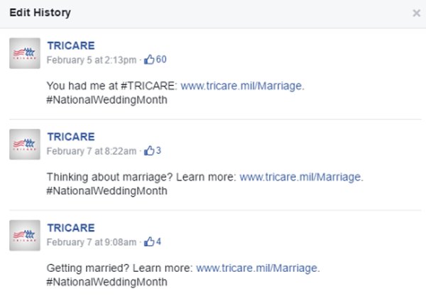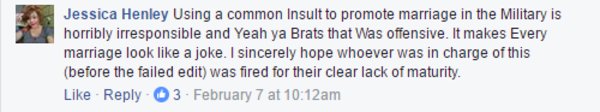 On Feb. 7, after enough kick back from commenters and several iterations and edits to the original post, Tricare’s Facebook page updated the message, stating that their intent was to be humorous.