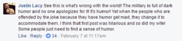 But not everyone was having Tricare’s apology. Quite a few commenters wanted the original status back, because, frankly, they thought it was funny as hell.