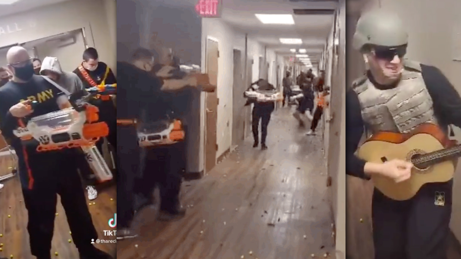 Things like this tend to happen when military members are bored. Naturally, it led to an epic brawl in the Pohakuloa Training Area of Hawaii, where our differences were settled through ground fights in the volcanic ash. But nowadays soldiers appear to be settling scores with Nerf arsenals, combat rolls, and guitar playing in a barracks hallway, and I must say, it looks like their barracks battles are way more fun and less bloody than mine.