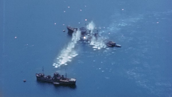 Throughout the film, we’re presented with never-before-seen moments: Kamikaze planes crashing into U.S. Navy ships; brutal assaults on Okinawa and Iwo Jima; and footage of Nagasaki and Hiroshima, still burning from the atomic bombings. These scenes, tough to watch as they are, muddy the waters and complicate an all-too-common narrative surrounding the Second World War: That because it was a necessary war, it was somehow less brutal.