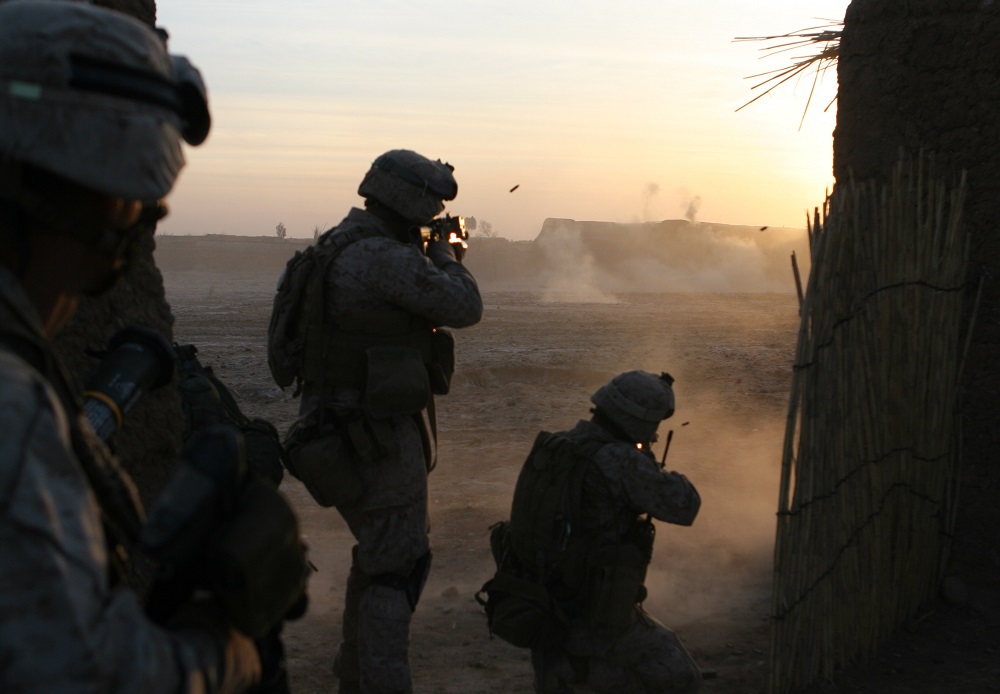 Within a half hour they were getting shot at. As a fire-team stepped out past a break in a waist-high mudwall onto an open stretch of parched ground, the staccato clack-clack-clack of AK-47-fire rang out, followed immediately by the high-pitched zip of close-hitting rounds. For the next five hours the patrol returned fire, bounded across hundred-meter stretches from one position to the next, and cleared one compound and fired rockets at another. As night fell, the Marines found their attackers had withdrawn, and so they returned to the outpost.