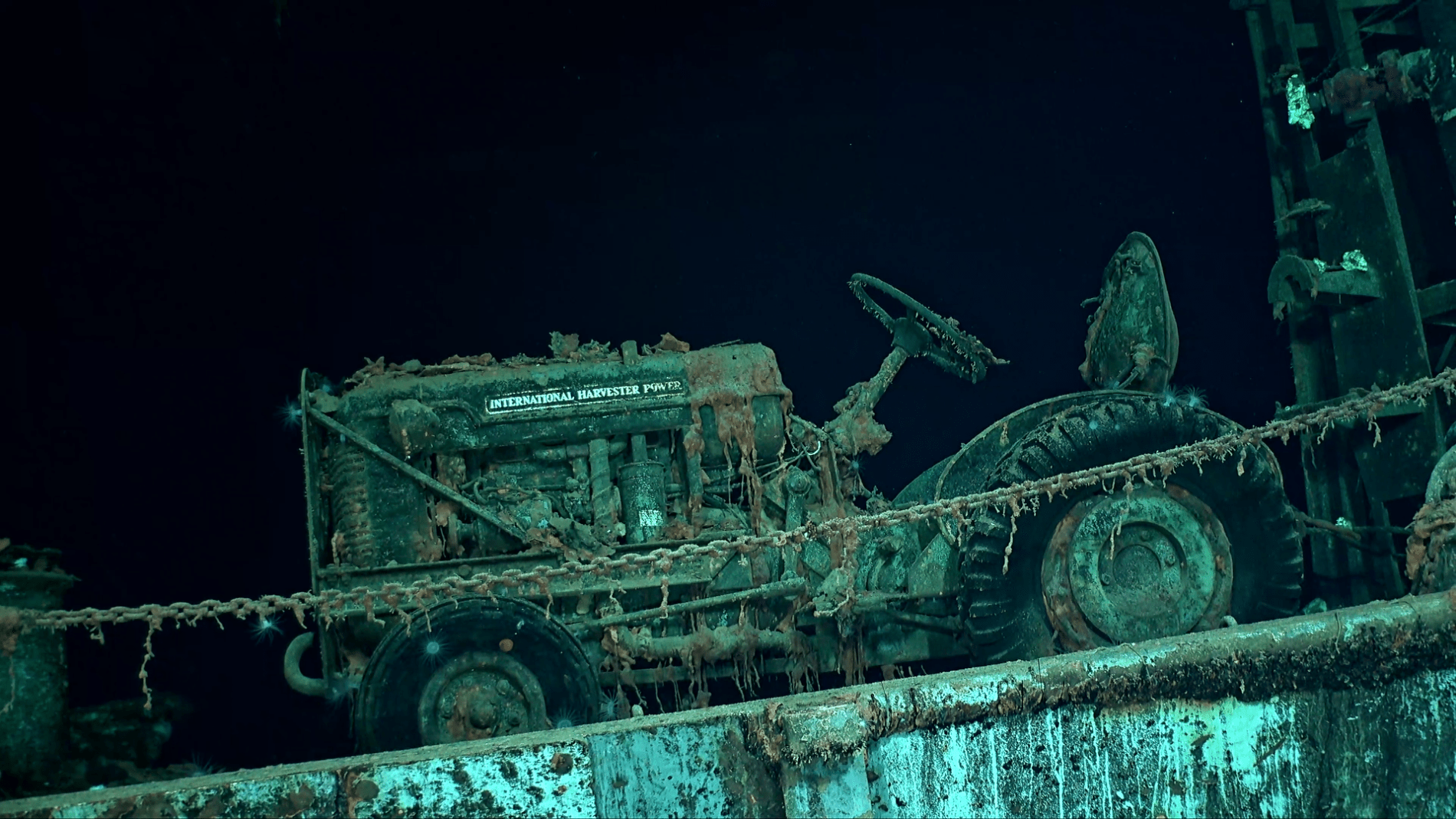 The International Harvester tractor in question was taken from a farm and modified by the U.S. military to help move aircraft around the deck of an aircraft carrier. It is currently chained to the deck of the USS Hornet. The wreck, lost for seven decades, was found 17,500 feet underwater in January 2019. The research vessel Petrel found it, on an expedition organized by the late Microsoft co-founder Paul Allen. Underwater robotic vehicles searched the sea floor, eventually locating and identifying the sunken vessel as the famous aircraft carrier.
