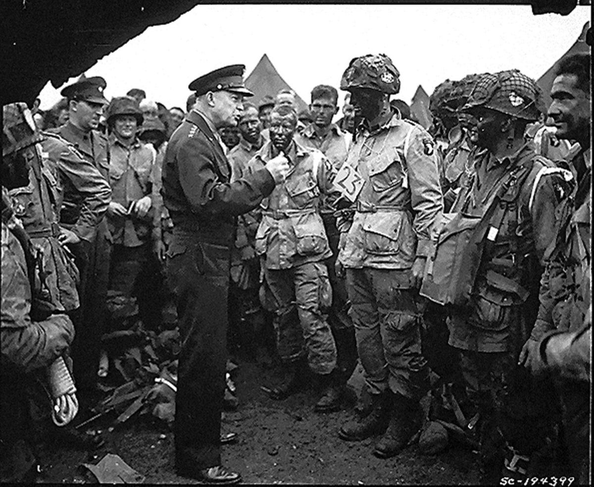 1. Gen. Dwight D. Eisenhower speaks with paratroopers who would jump behind enemy lines on D-Day, on June 5, 1944.