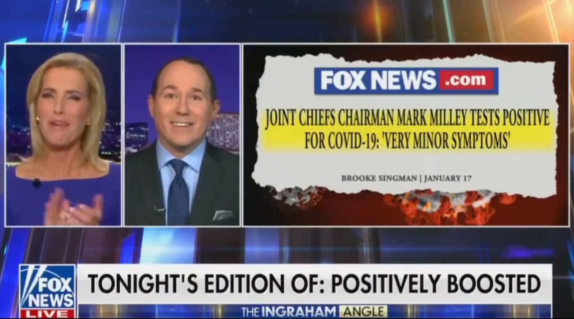 Fox News’ Laura Ingraham appears delighted that Gen. Mark Milley has COVID-19