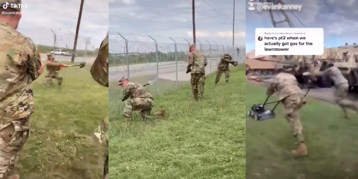 This video of soldiers ‘cutting’ the grass with shovels will give you flashbacks