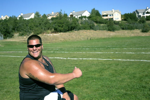 U.S. Marine Corps Sgt. Michael Wishnia prepares to throw the shot put during field practice for the Marine Corps team in Colorado Springs, Colo., Sept. 26, 2014, in preparation for the 2014 Warrior Games.