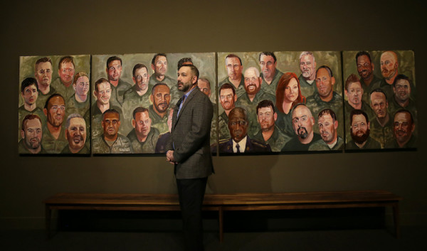 U.S. military veteran Robert Ferrara talks in front of a mural painted by Former President George W Bush during a press preview of an exhibition of Bush’s paintings of veterans in Dallas, Tuesday, Feb. 28, 2017.AP Photo by LM Otero