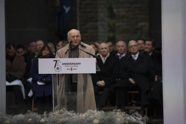 An Army veteran of the Battle of the Bulge made the history books come alive with his short speech during a 75th anniversary commemoration in Bastogne, Belgium.