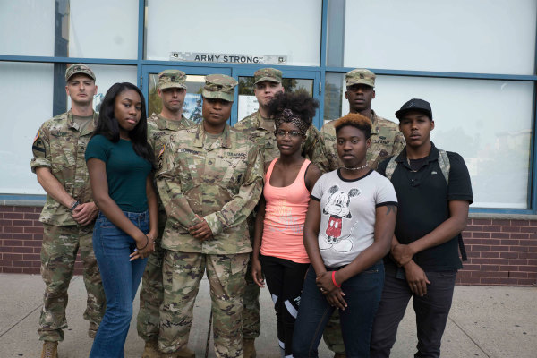 One morning, I joined McDonald and Staff Sgt. Hilton George, a native of Grenada who grew up in Brooklyn, on a trip to Irvington High School, where every morning students line up to pass through a row of metal detectors manned by a cadre of security guards. Some of the recruiters have started waiting until kids here enter their senior year before engaging them in earnest, because until that point the chances of them dropping out of school or getting arrested for a violent crime are simply too high. One of Haddock’s prospective recruits went to jail for murder. Meanwhile, interviews I conducted with several students painted a picture of a chaotic environment where fistfights are frequent and kids are awarded good grades for simply staying out of trouble.