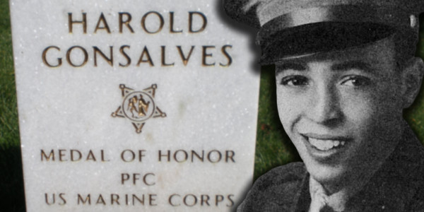 “Stouthearted and indomitable, Pfc. Gonsalves readily yielded his own chances of survival that his fellow marines might carry on the relentless battle against a fanatic enemy,’ reads his Medal of Honor citation.