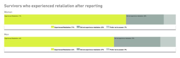 Why not? Possibly because they expected nothing good to come out of an investigation. Two-thirds of the men and almost three-quarters of the women who did report a sexual assault said they were retaliated against because of it: