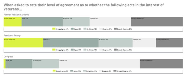 And most dislike politicians of all stripes, though they’re a little easier on Trump than they are on former President Barack Obama — or Congress, whose popularity among IAVA members ranks lower than socialism, Jefferson Davis, Darth Vader, Emperor Palpatine, and Jar-Jar Binks among U.S. voters: