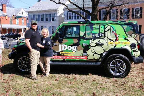 Upon leaving the military, Stroop served as a Technical Director for the Air Force as a civilian contractor. “When I retired, I was ready to retire but I wasn’t ready to leave the service. After five years with the Air Force, it was time to do something a little different.” One day while on Facebook, Stroop came across an ad for JDog. “I thought it was an interesting concept,” he stated. So he decided to visit the JDog HQ office for a Discovery Day. After meeting with the staff and learning more about Flanagan’s mission, he knew it was the right fit for him. “I jumped in very fast; all hands in,” Stroop declared. By early November 2018, Stroop’s first franchise JDog Junk Removal & Hauling Hanover was open for business. Less than a year later, Stroop has opened 3 more franchises in South Central PA, as well as five in the Cincinnati area of Ohio, which his brother, Bobby, will run.