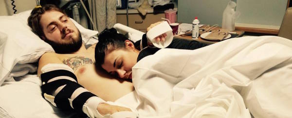 The 14-hour surgery happened in mid-August. I was anxious, excited. But also knew there was a chance I might die. Jess put on a brave face but we were both scared. As they began wheeling me into surgery I started to panic. Jess, left alone in the waiting room, just broke down. The only thing that calmed me down was a nurse, who assured me everything was going to be fine. The team started to put me under, and before I knew I’d even fallen asleep, I was waking up with new arms.
