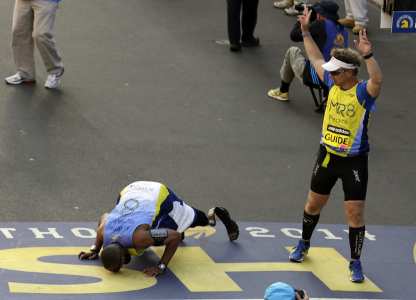 Last Sunday, somewhere in Brooklyn on the 26-mile trek, King’s prosthetic legs broke. He had to stop and get them repaired and lost invaluable time. Crossing the 59th Street Bridge, King ran past event organizers who were already starting to clean up. A policeman reportedly stopped at one point and offered him a ride. The race was supposed to be over.