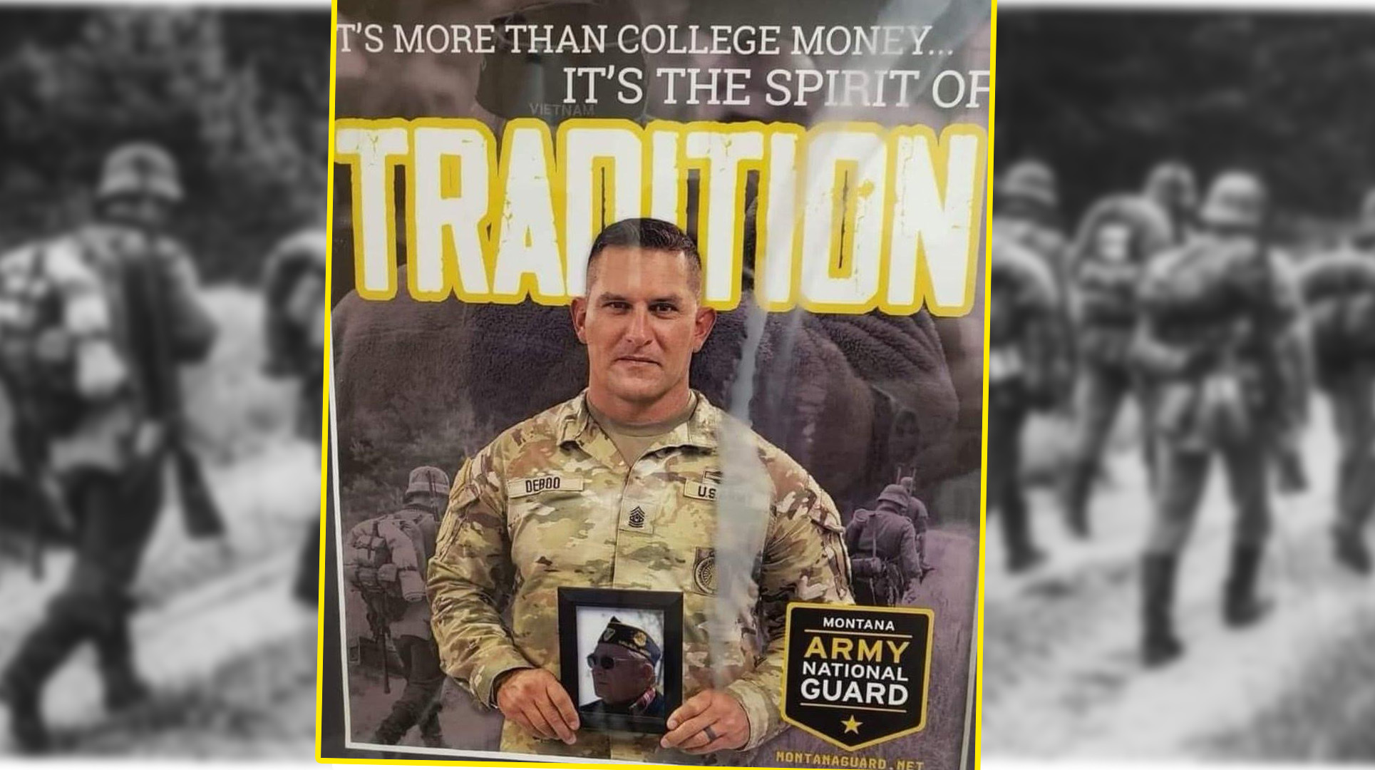 “Montana National Guard leadership recently became aware of a Montana Army National Guard recruiting poster that includes a small background image that appears to show members of the German Army,” Finnegan said in a prepared statement. “As soon as we became aware of the issue, we directed the vendor to remove the poster immediately. While the poster was intended to highlight Montana’s tradition of multi-generation service, the background image does not represent our history or values. Montana National Guard leadership is putting in place an approval system to ensure nothing like this happens again, and we regret and apologize for this serious mistake.”