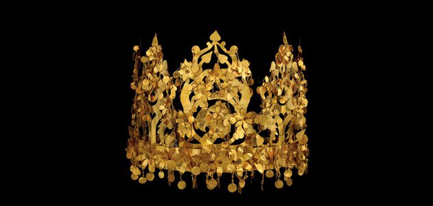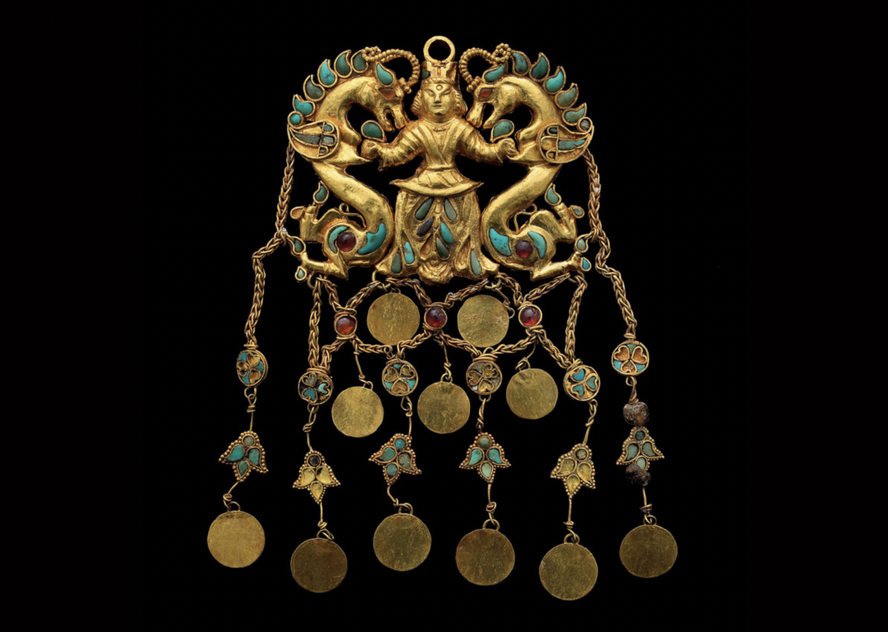 One of the tombs was for a young woman in her thirties who was described as a “nomadic princess” by Viktor Sarianidi, the Soviet leader of the dig. Inside were Roman coins minted in the first century A.D. in modern-day Lyon, France, daggers with Siberian bears on them, an Indian medallion with an early depiction of Buddha, intricate golden belts, and a 5-inch tall gold leaf crown that even folded for transport. Items from every corner of the European and Asian continents are represented in the collection and provide incredible insight into the trade routes and culture that existed at the time.