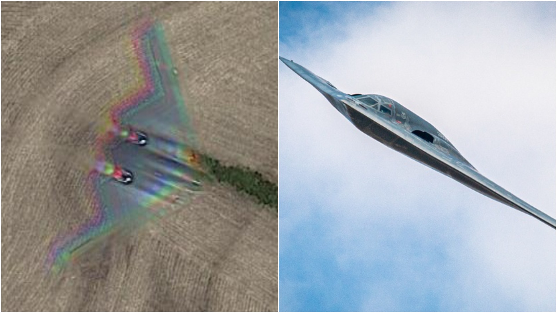Unlike a UFO though, it’s not surprising to see a B-2 bomber flying over Missouri. After all, the only B-2 base in the world is at Whiteman Air Force Base, just about 20 miles south of the spot the aircraft was spotted flying over on Google Earth. (A direct link to the Google Earth image can be found here.)