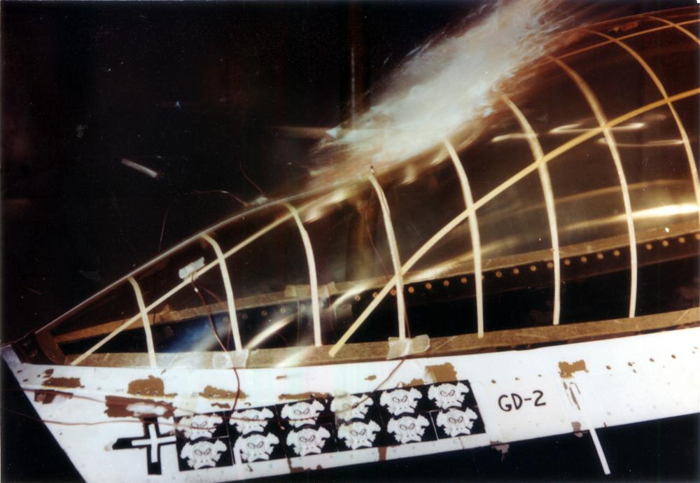 Bird strikes against an aircraft’s glass canopy or windscreens can kill or injure aircrew from impact, debris, or cabin decompression. Force is calculated by mass and acceleration, so even a small bird can cause catastrophic damage at the breakneck speeds of a jet aircraft. Though the facility at Arnold has since shut down, chicken guns are still in use launching dead birds and also drones at aircraft components.