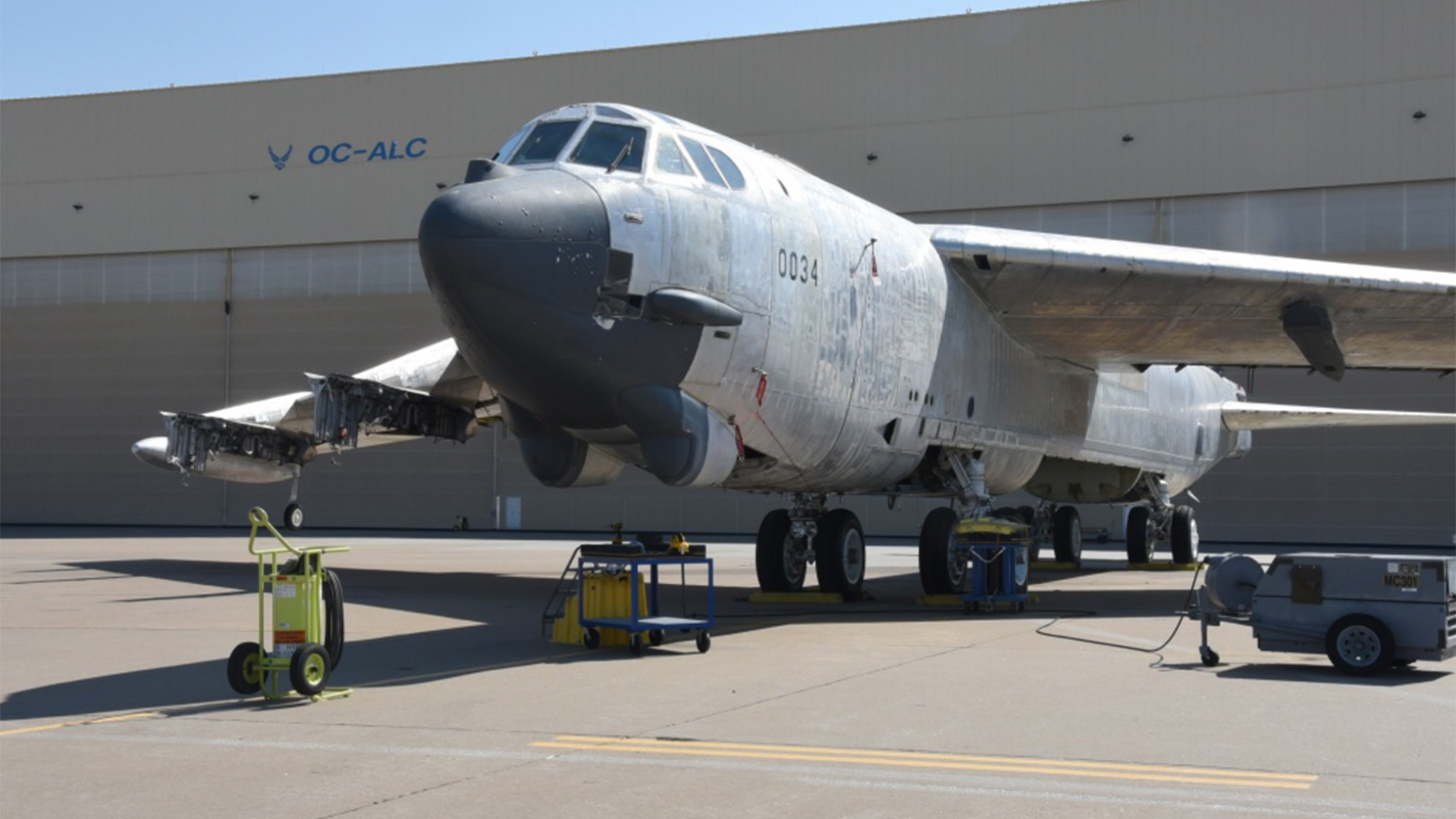 But those 128 days marked the end of only the first phase of Wise Guy’s comeback. In May 2019, a skeleton crew of three aviators flew the plane to Barksdale Air Force Base, Louisiana for the second phase: getting back up to fleet standards. Eleven months and two maintenance groups later, the B-52 arrived at Tinker Air Force Base, Oklahoma on April 1, 2020, for its still-substantial finishing touches. In particular, the old aircraft needed its electrical wiring rebuilt, its main landing gear’s structural defects corrected, its engines overhauled and its software updated.