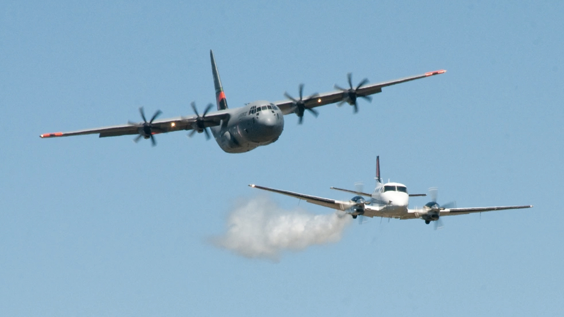 “All it takes is the wind to shift 90 degrees and everything we’re working on can be called off,” Pantusa said. For example, if smoke blows over the drop zone, it might limit visibility, which makes it too dangerous for MAFFS crews to fly into. Luckily they do not fly alone: it’s standard procedure for C-130s and other firefighting aircraft to follow a smaller lead plane, often flown by federal or state pilots, which makes sure the conditions and wind speed are good and that the escape route is clear for the aircraft to climb back up.
