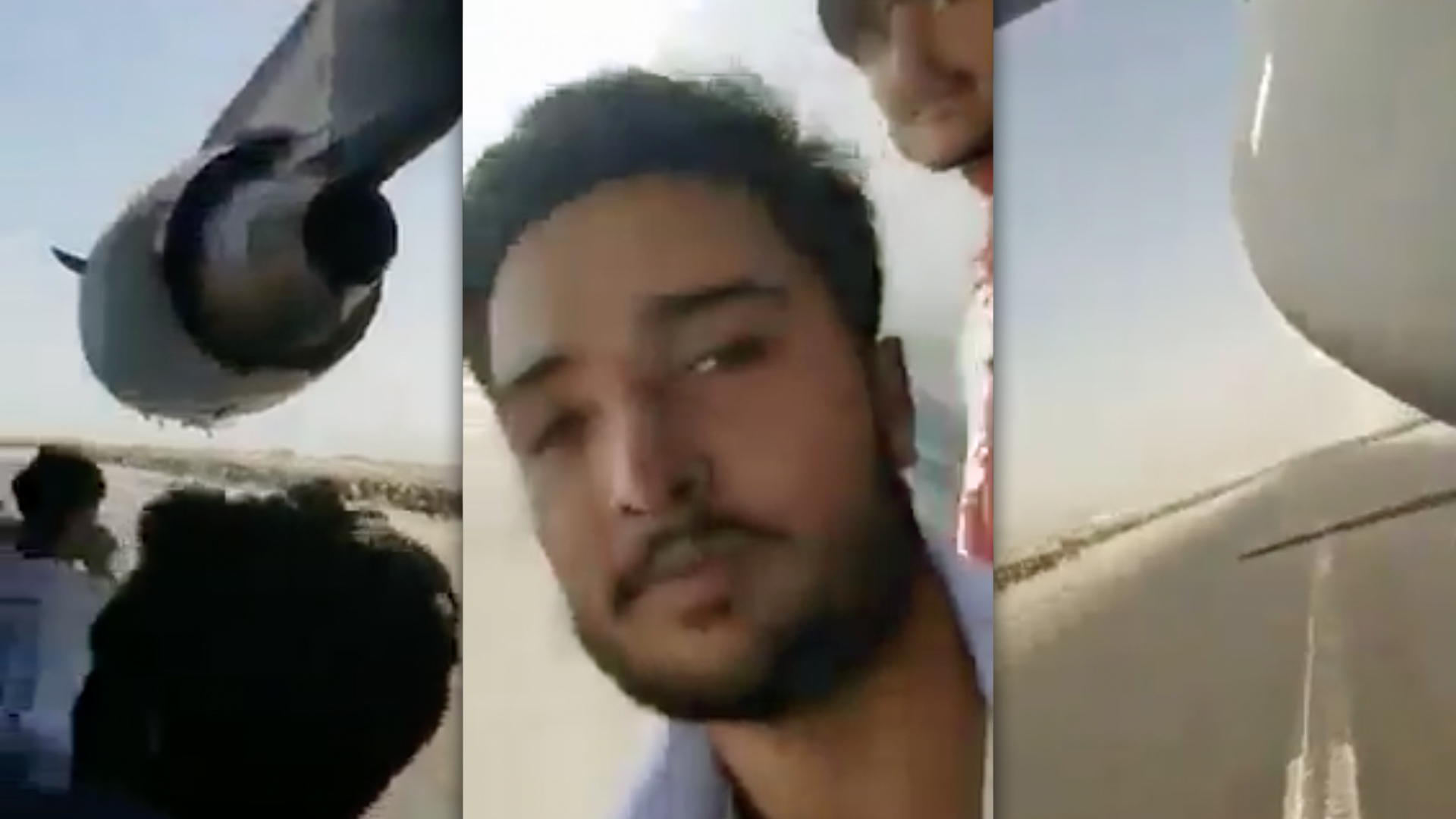 “This is not a Hollywood movie stunt,” wrote Sudhir Chaudhary, an Indian journalist who shared the video on Twitter. “This is an Afghan man with several others clinging to an aeroplane to survive the war and to cross the border at any cost. I don’t know if he survived.”
