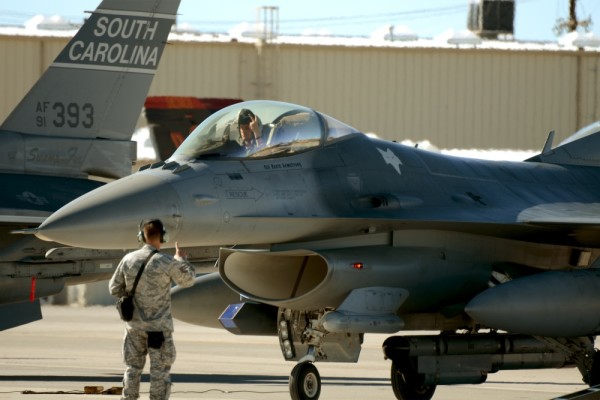 “The no-notice deployment consisted of aircraft and personnel departing Aviano Air Base within 9 days, and our F-16 fighters completing the first combat sortie within 14 days,” Julie Scott, a spokesperson for Aviano Air Base, told Task & Purpose. “Augustin’s leadership of personnel to plan and execute the full spectrum of training at home was implemented and successfully executed during combat missions.”