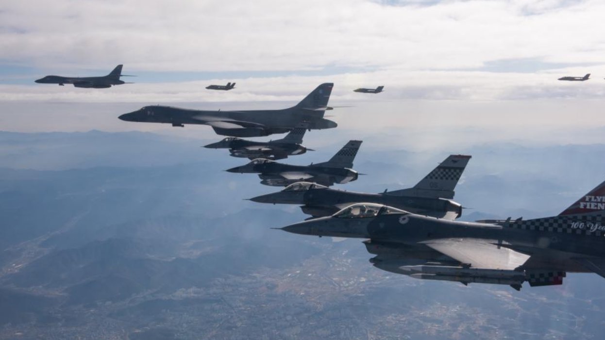 U.S. Air Force fighters jets plus two B-1B Lancer bombers joined South Korean jets in the sky today. It was the latest joint exercise and show of force between the two militaries this month, again following a new missile launch from North Korea.